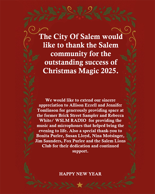 Salem is located in scenic Southern Indiana just 35 miles north of Louisville, Kentucky and less than 100 miles south of Indianapolis, Indiana. Salem is a great place to live and make a living. We have high achieving public schools, and a wide variety of community activities. Salem also has a strong and diverse economic base. If you're a visitor to Salem, we hope you will take note of our many unique and historic destinations. As a city, Salem has retained much of its small town flavor, a flavor that is enhanced by the city’s tree-lined streets, stately old homes and a friendly atmosphere that has been nurtured and handed down through the generations.