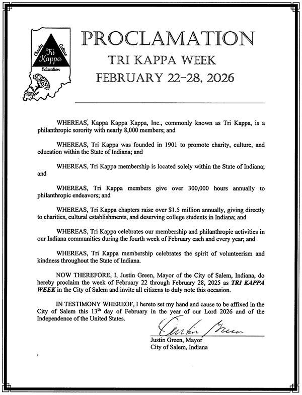 Salem is located in scenic Southern Indiana just 35 miles north of Louisville, Kentucky and less than 100 miles south of Indianapolis, Indiana. Salem is a great place to live and make a living. We have high achieving public schools, and a wide variety of community activities. Salem also has a strong and diverse economic base. If you're a visitor to Salem, we hope you will take note of our many unique and historic destinations. As a city, Salem has retained much of its small town flavor, a flavor that is enhanced by the city’s tree-lined streets, stately old homes and a friendly atmosphere that has been nurtured and handed down through the generations.